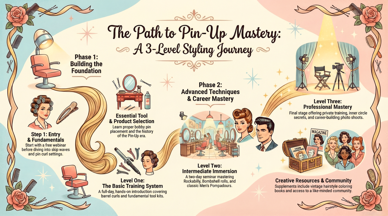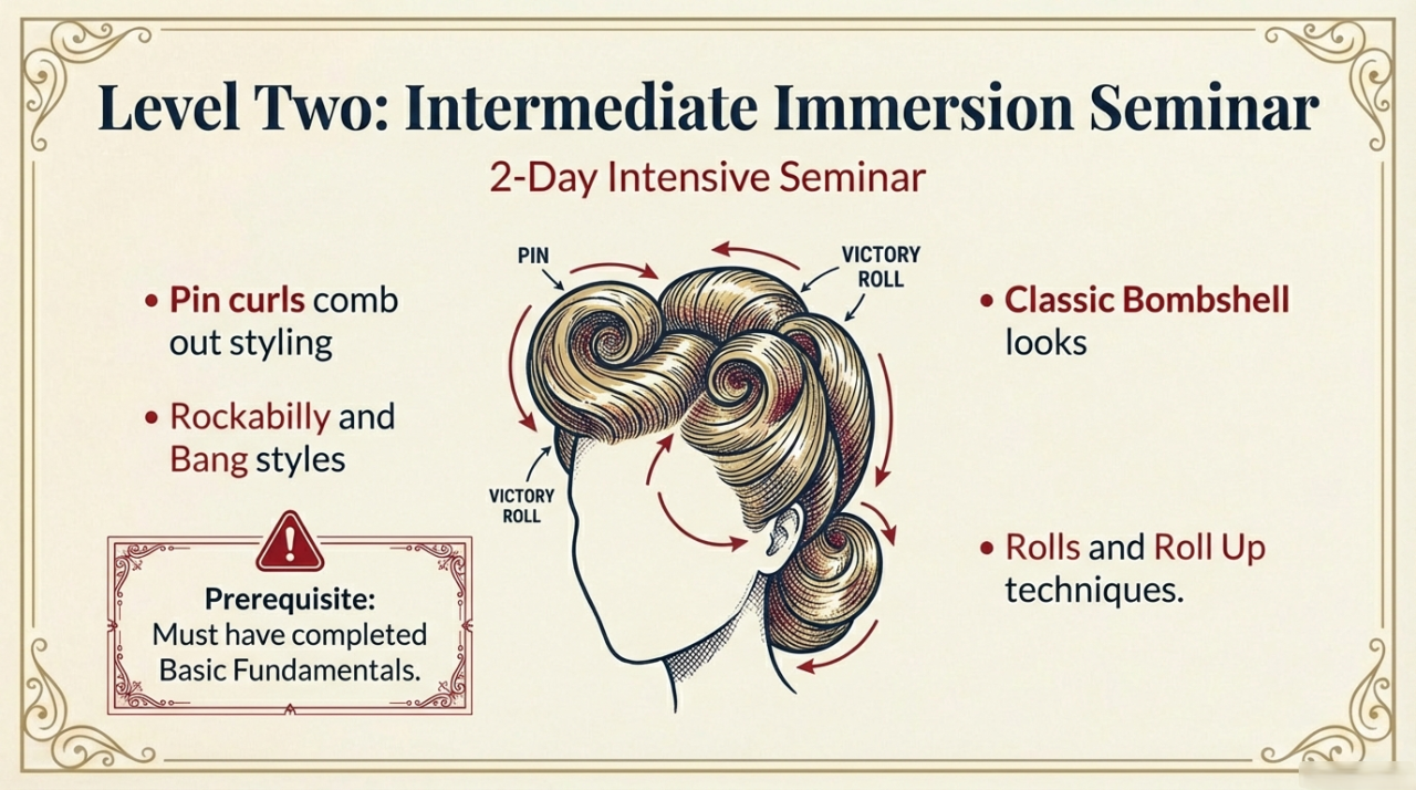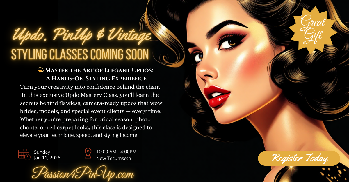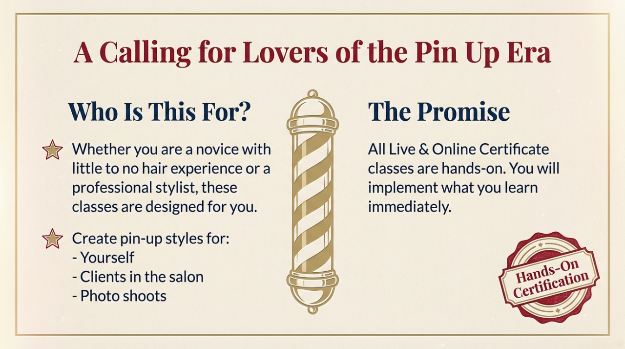 Calling all hairstylists and pin-up enthusiasts! Travel back to the fabulous 1940s & 50's, where glamorous curls, victory rolls, and iconic updos defined an era of timeless style. ๐